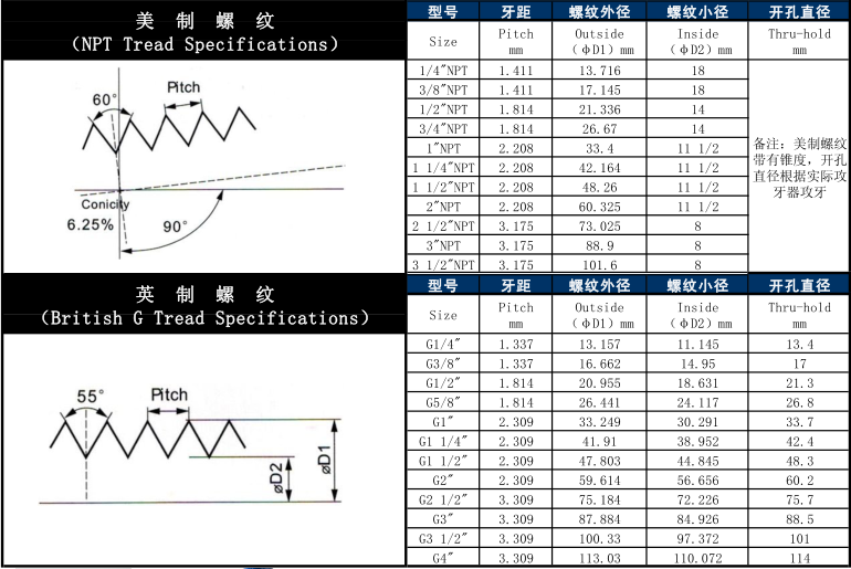 格兰头开孔尺寸规格表